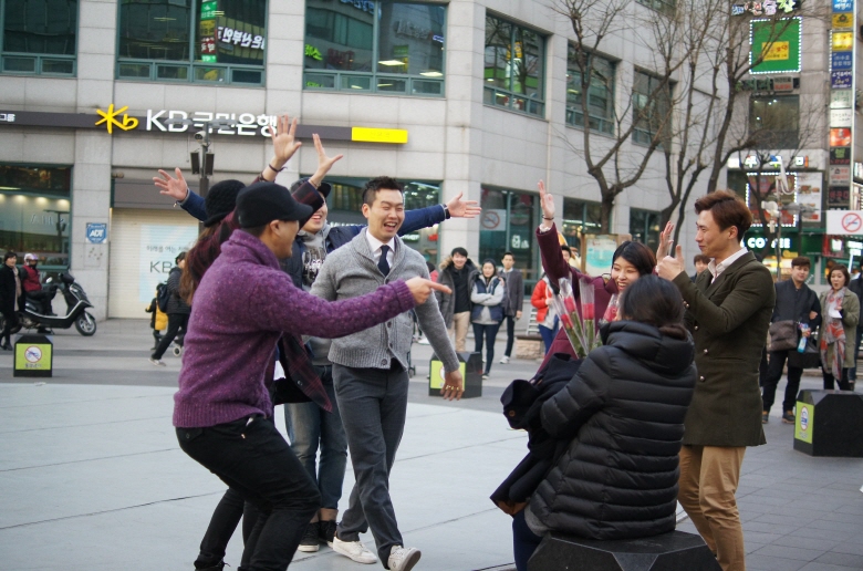 지나가는 행인이 갑자기 꽃다발을 내밀며 한 여성분을 위한 안무가 펼쳐집니다~