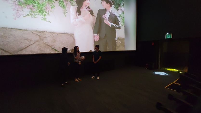 대전 영화관을 통으로 빌려서 노래를 부르며 등장한 조O철 신랑님!!