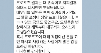 배우분들 덕분에 멋진프로포즈를 잘했다고 말씀해주시고정말로 기억에 남으실만한 프로포즈를 하셨다고 말씀…