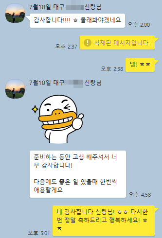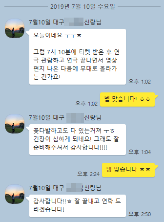 고객카톡후기 19년7월10일 대구프로포즈 신랑님의 후기입니다 ^^
