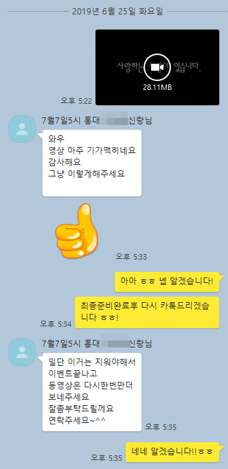 고객카톡후기 19년7월7일 홍대프로포즈 신랑님의 후기입니다 ! 페이지 정보 작성자고프로포즈 댓글 0건 조회 3,118회 본문 모든점에 있어서 고프로포즈를 너무 칭찬해주셨던 신랑님의 후기입니다 ^^고프로포즈는 너무 많이 들어봐서 믿고맡기는게 당연하다고 말씀해주셨던 신랑님입니다 ㅎㅎ영상편지 제작부터 프로포즈 진행까지 불만을 1도 안가젔던 완벽한 프로포즈였던 현장입니다 ^^ 검색 목록 0개의 댓글이 있습니다. 등록된 댓글이 없습니다.