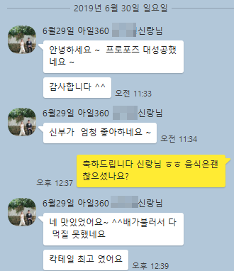 고객카톡후기 19년6월29일 레스토랑프로포즈 신랑님의 후기입니다 ^^ 페이지 정보 작성자고프로포즈 댓글 0건 조회 4,290회 본문 레스토랑에서 진행되었던 프로포즈 신랑님의 후기입니다!음식도 정말 맛있고 배가불러서 다 못드셨다고 하시네요 ㅎㅎ음식도 최고고 프로포즈도 대성공하셔서 정말 기분좋았던 후기입니다 ^^ 검색 목록 0개의 댓글이 있습니다. 등록된 댓글이 없습니다.