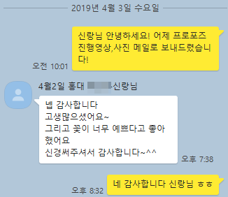 고객카톡후기 19년 4월2일 홍대프로포즈 신랑님의 감동후기입니다 ^^ 페이지 정보 작성자고프로포즈 댓글 0건 조회 3,082회 본문 19년 4월2일 홍대프로포즈 신랑님의 감동후기입니다 ^^신랑님과 신부님이 먼저 연극을관람하고 이벤트가 진행될때지인분들이 몰래등장해서 축하해주는 프로포즈이벤트 후기입니다 ! 검색 목록 0개의 댓글이 있습니다. 등록된 댓글이 없습니다.