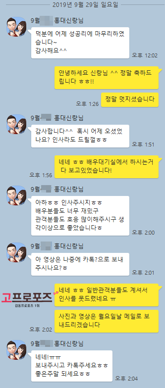 고객카톡후기 19년 9월28일 홍대프로포즈 신랑님의 감동후기입니다 ^^! 페이지 정보 작성자고프로포즈 댓글 0건 조회 3,940회 본문 19년 9월28일 홍대소극장에서 연극프로포즈로 진행되었던 신랑님의 감동후기입니다 ^^배우분들도 너무 재미있었고 관객분들이 호응을 많이해줘서 신랑님이 생각하셨던것보다훨씬 더 좋았던 프로포즈후기입니다 ^^두분 정말 축하드리고 행복하게 사세요! 검색 목록 0개의 댓글이 있습니다. 등록된 댓글이 없습니다.