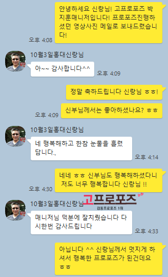 고객카톡후기 19년10월3일 홍대프로포즈 신랑님의 감동후기입니다 ^^