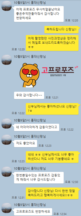 고객카톡후기 19년10월9일 홍대프로포즈 신랑님의 감동후기입니다 ^^!