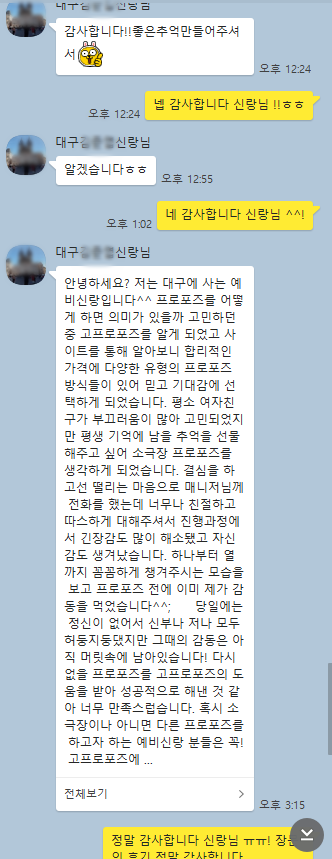 19년10월15일에 진행되었던 대구신랑님의 장문의 카톡후기입니다 ^^