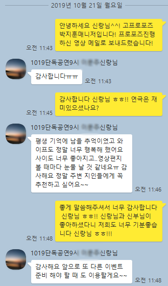 고객카톡후기 19년10월19일 홍대프로포즈 신랑님의 감동후기입니다^^!