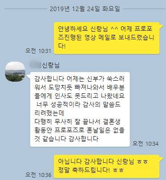 고객카톡후기 19년12월23일 대학로연극프로포즈 신랑님의후기입니다 ^^