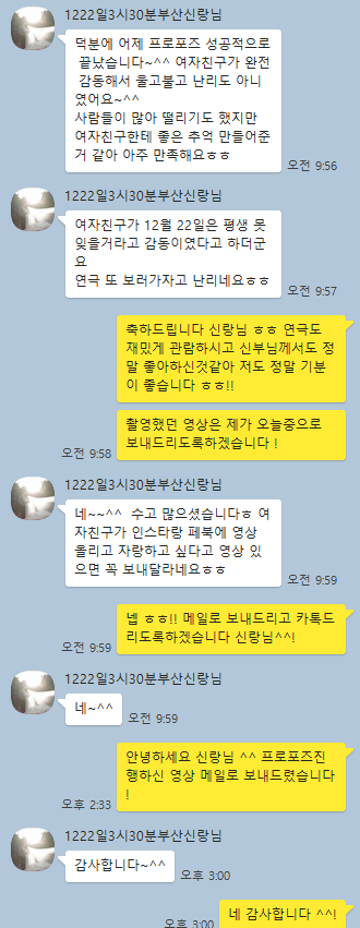 고객카톡후기 19년12월22일 부산연극프로포즈 신랑님의 감동후기입니다^^