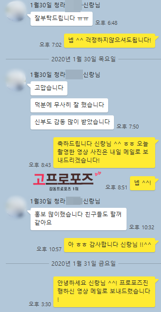 고객카톡후기 2020년 1월30일 청라메가박스 신랑님의 감동후기입니다 ^^