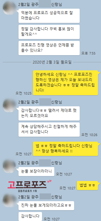 고객카톡후기 2020년 2월2일 광주소극장프로포즈 신랑님의 감동후기입니다!