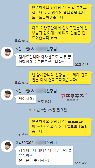 고객카톡후기 20년 5월23일 졸탄프로포즈 김O학신랑님의 감동후기입니다 ^^