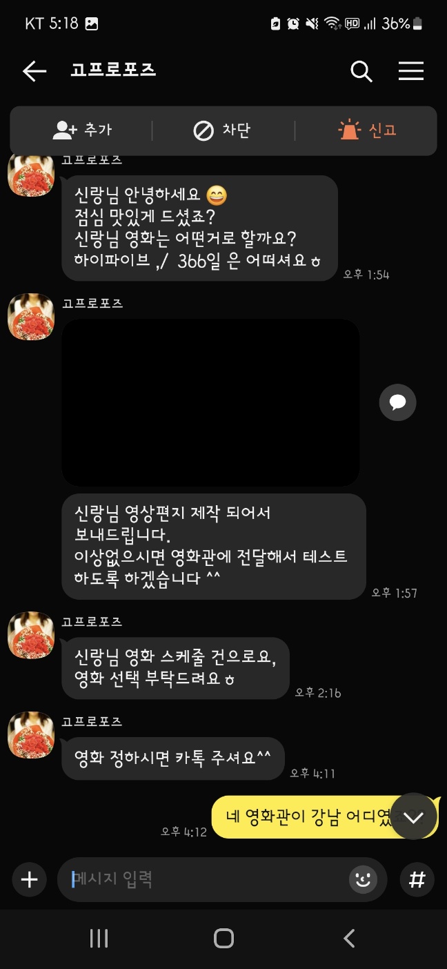 고객리얼후기 영화관 프로포즈 성공적으로 마무리했습니다.