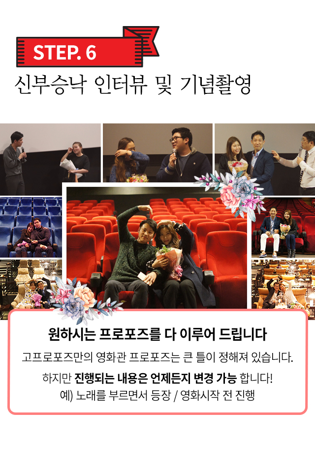 프로포즈를 엄청 고민하다가 고프로포즈를 알게되어 예측 불가능한프로포즈가 딱 영화관 이라고 판단 되어 진행 부탁드렸습니다정말 마누라가 감…