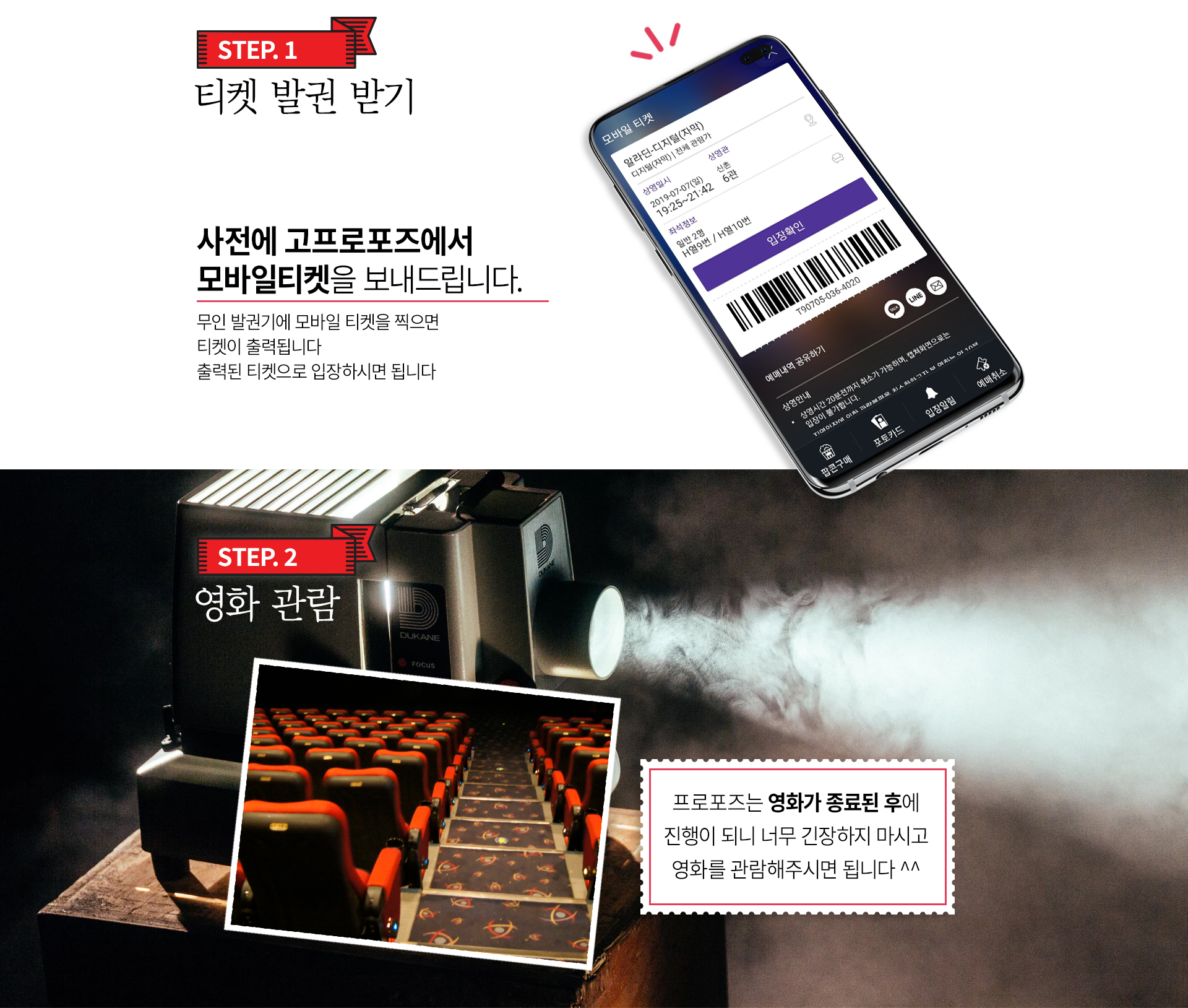프로포즈를 엄청 고민하다가 고프로포즈를 알게되어 예측 불가능한프로포즈가 딱 영화관…